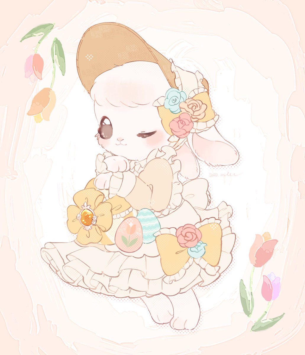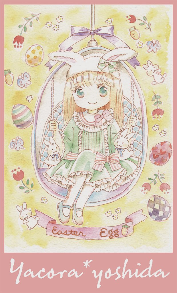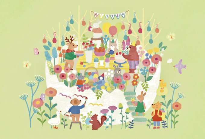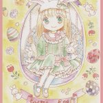 #HappyEaster2023 月光荘さんのクリエイターズ マーケットで描いた、 イースターイラストですが💦 この時のスキャナーが色を全然 拾ってくれなかったのです💦 (原画はもっと鮮やか)