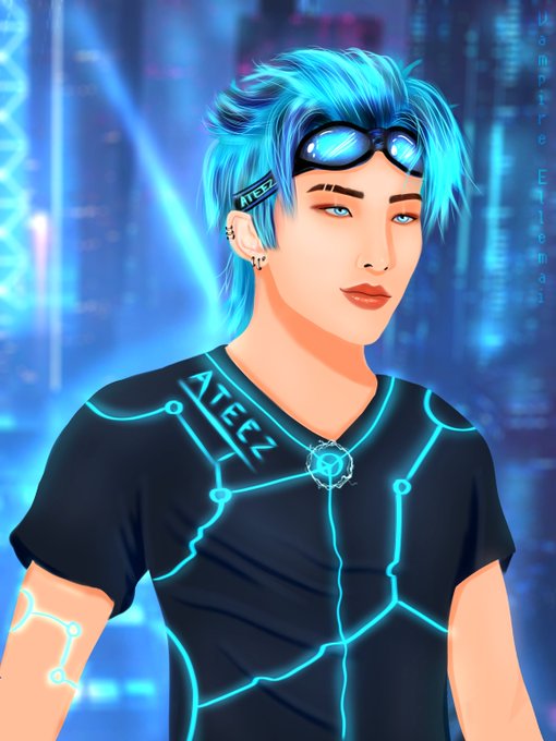 Cyber Mingi 😎💙 Happy Birthday Mingi, I hope your day is a wonderful birthday! 🎂 🎉 🥰 #HappyFixSongMingiDay #MingiDay #ATEEZfanart #MINGI @ATEEZofficial