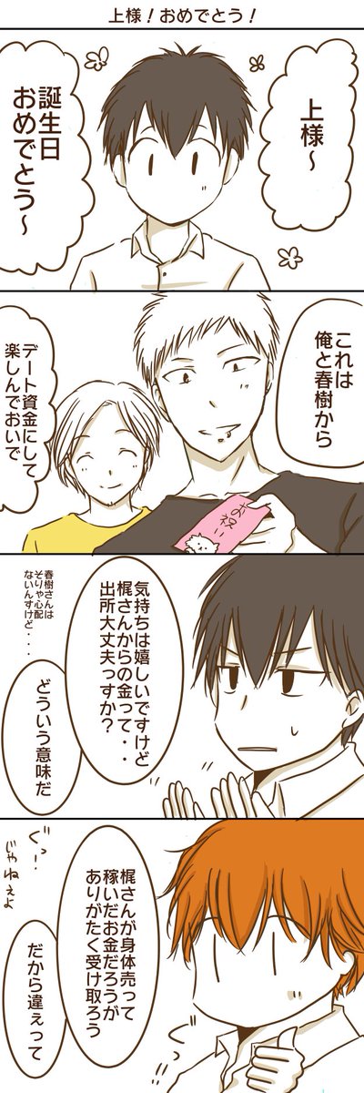 春樹さん誕生日カウントダウン企画参加させて頂いています。 過去作をコンセプト別に4作品選んで上げています。 今回は『&秋彦(ギャグ)』です 初期の多めです。 あ、最後のは去年の961さんの本のゲストで描いたやつですん。 あと2日✌!! #Happy_HARUKI_week #中山春樹誕生祭2023