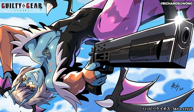 "SKY'n STYLE" It seems HappyChaos enjoy flying in style too! 😆 #HappyChaos artwork for #Snackbox commission! #GuiltyGear fans, enjoy~ @ArcSystemWorksU #GuiltyGearStrive #Morrigan #darkstalkers