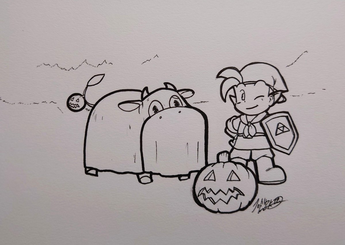 #inktoberday31 Theme - Farm. It's Halloween time at the farm in Harvest Moon (or Story of Season). All 31 days of Inktober! Done! #inktober #inktober2022 #inktober2022day31 #inktober2022farm #farm #harvestmoon #storyofseasons #halloween #art #artist #artwork @inktober