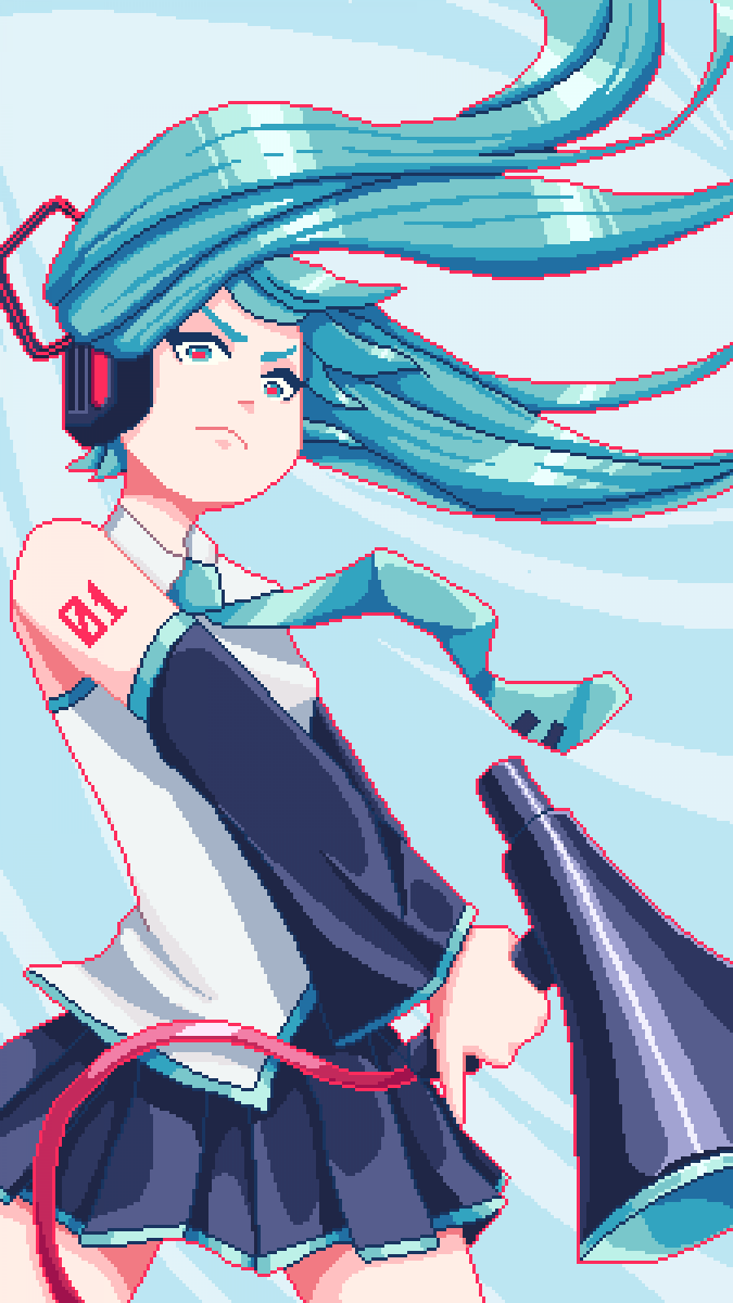 Happy 14th birthday Miku! #pixelart #aseprite #HatsuneMiku #HatsuneMiku14Anniversary #HatsuneMikuBirthday2021 #ドット絵 #初音ミク #初音ミク生誕祭2021