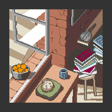 掃除の日 - ハリネズミと一緒にコーヒーブレイクを楽しんでいる Its cleaning day, taking a small break. Which item would you choose? #HealingItem #pixelart #pixel_dailies #ドット絵 #毎日ドット絵 @Pixel_Dailies