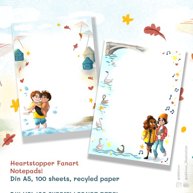 My notepad designs! It's A6 not A5 😅 I'll try to make one with Tara and Darcy as well. I'll bring them to #DoKomi2022 ✨ #HeartstopperNetflix #heartstopperfanart
