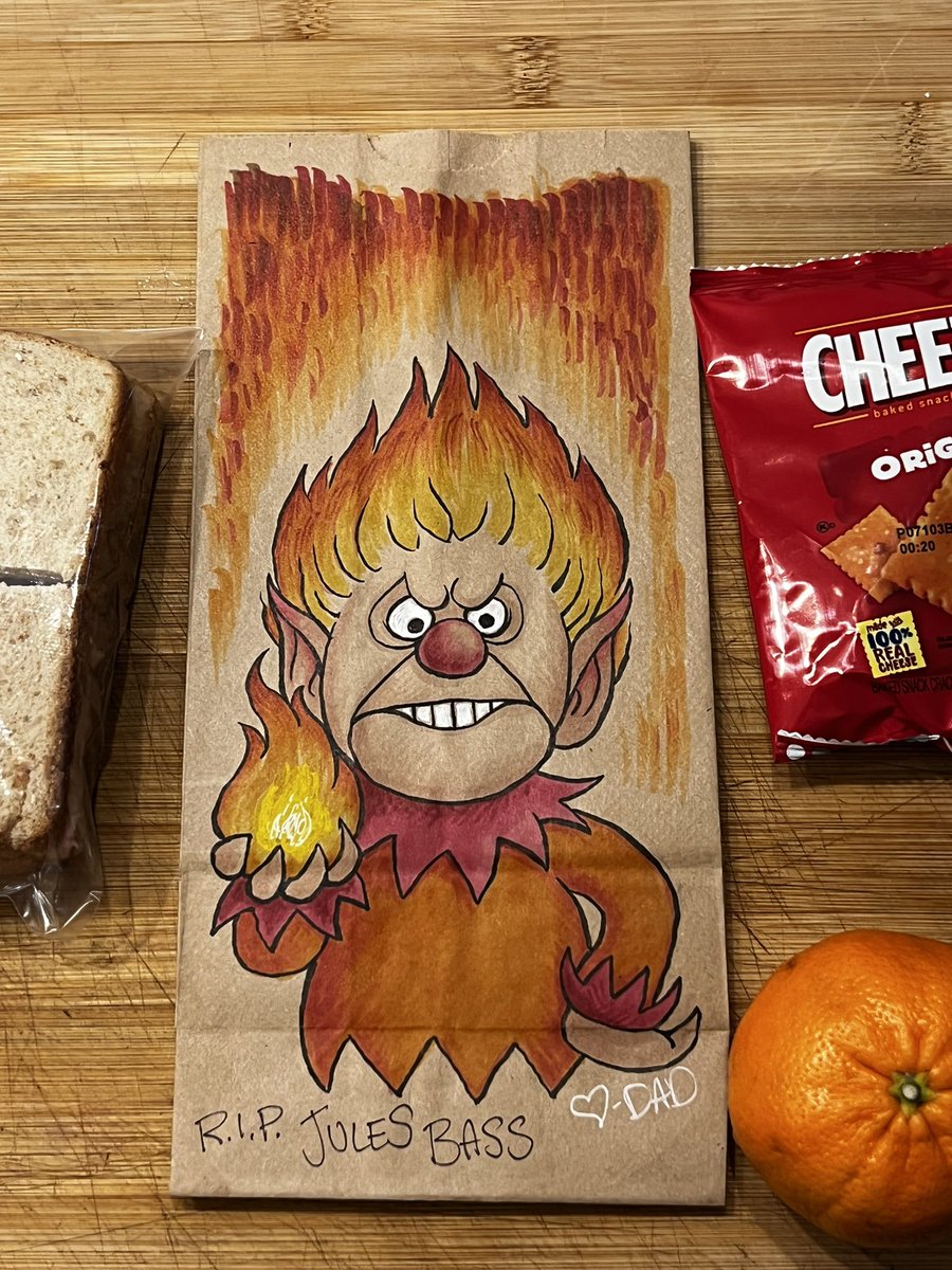 Thursday’s Lunch Bag Art: Heat Miser #lunchbagart #rankinbass #heatmiser #theyearwithoutsantaclaus #cartoon #drawing #inktober #drawdaily #ripjulesbass @JulesBassFilm