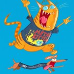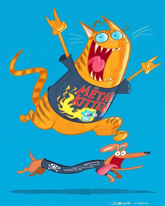 More adventures for the 'extraneous heavy metal umlaut'™ with kitten & sausage dog... #heavymetal #umlaut #rockmusic #tshirt #kitten #sausagedog #dachshund #skull #illustration #stevemaythe1st