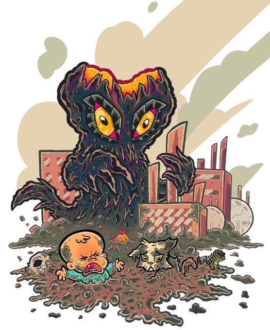 The shadow over the city… the mass made of smoke… God answer me. Have I created the #SmogMonster? Some info on my Hedorah Redesign below⬇️⬇️⬇️ #hedorah #godzilla #kaiju #illustration #drawing #ArtistOnTwitter #GodzillaEons #monster #art #characterdesign #pollution