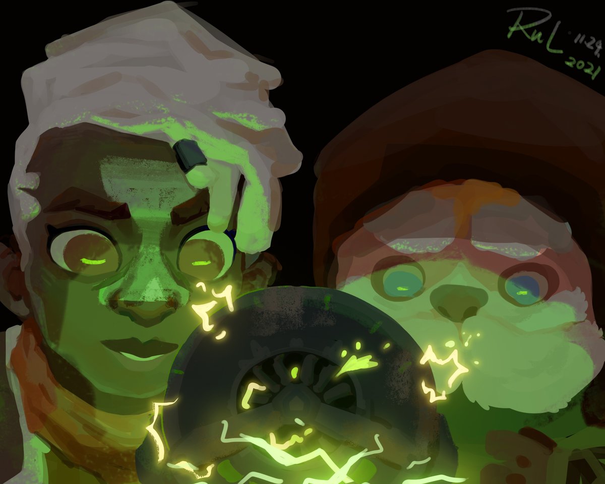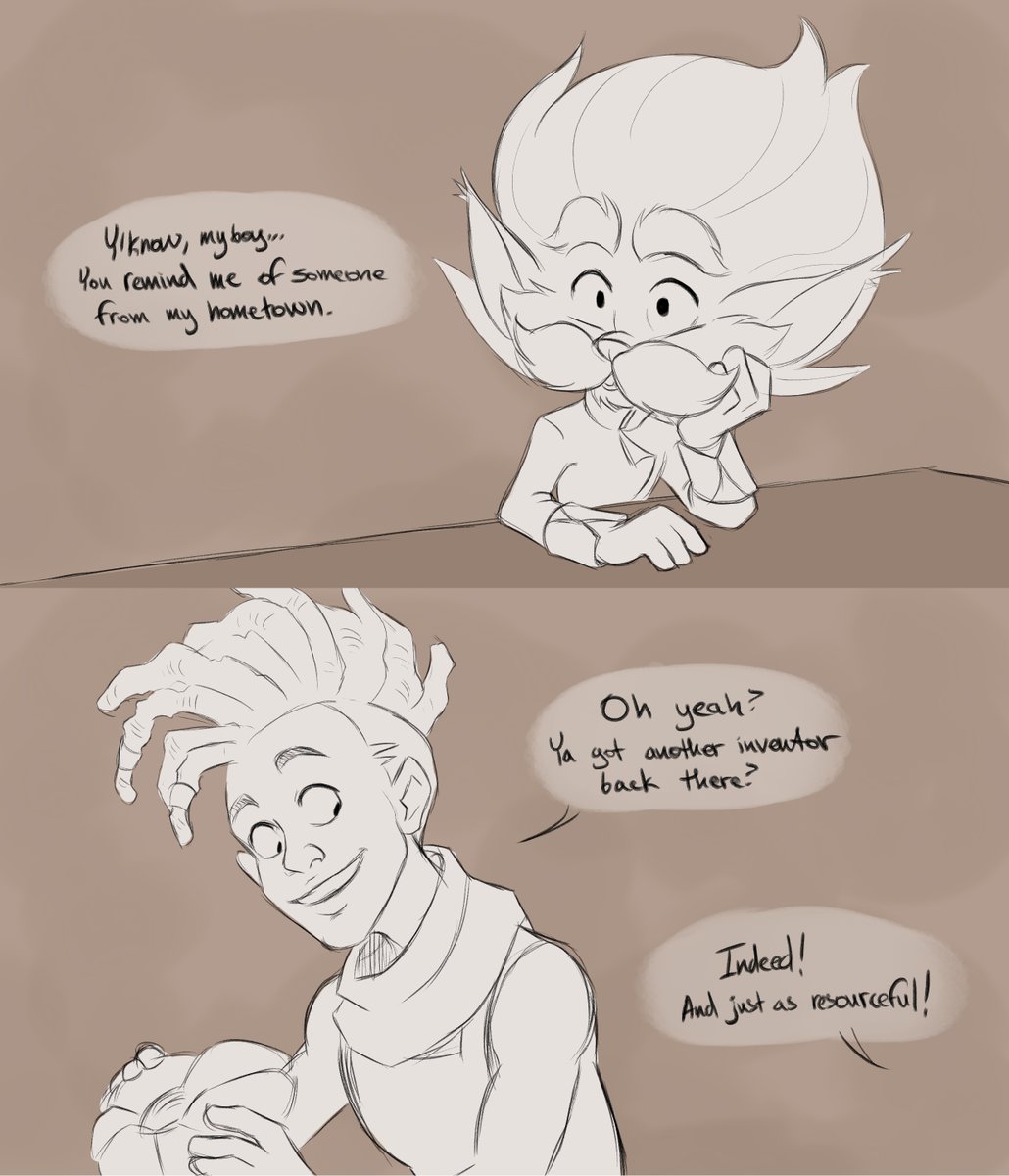 -"Oh, ingenious. Though these blades seem improperly pitched." -"You're wrong. It's designed for the fissures. The air is denser." #Arcane #leagueoflegends #Ekko #Heimerdinger #Fanart