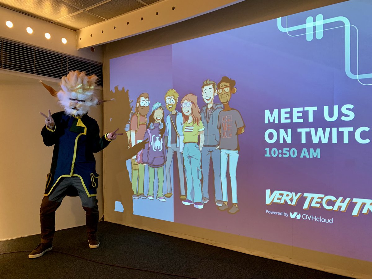 Essayage sur place à #VeryTechTrip pour un talk sur le #cosplay avec un peu de tech ! On est prêt avec @titimoby pour 16h en salle Nathan Drake !!! #arcane #heimerdinger