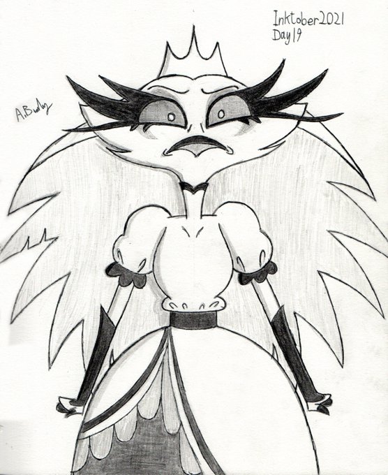#Inktober2021Day19! Last of the Goetia family! Its Stella! I feel sorry for her but her methods of coping are debatable... #Inktober2021 #Inktober #ArtistOnTwitter #HelluvaBossFanart #Helluvaboss #Vivziepop #traditionalart #traditionaldrawing #fanart #HelluvaBossStella #Stella