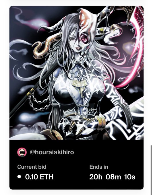 The auction has 20 hours left. We are currently receiving a bid of 0.1 ETH. I look forward to your kind cooperation☺️ #nft #hel #NFTJapan #foundation #foundationnft #auction #darkart #skull