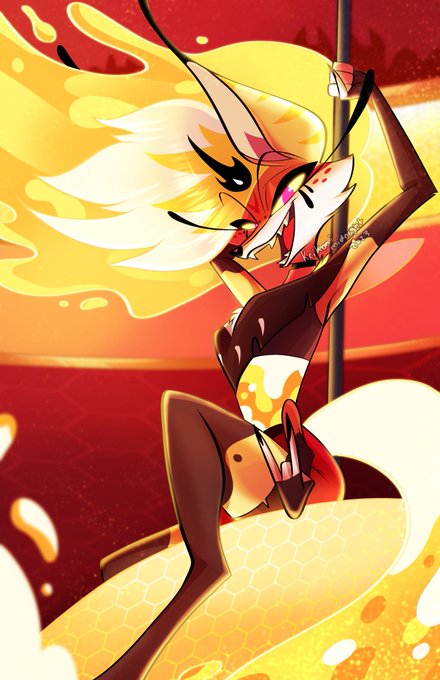 Touch up of Aless'first time going to one of🐝Queen Bee's🐝 parties! Although he's surprised by her suggestion, and to this day is still processing what had happened. #honeymoonHB #HelluvaBossBeelzebub #HelluvaBossQueenBee #HelluvaBossBee #HelluvaBossFanart #HelluvaBoss #impsona