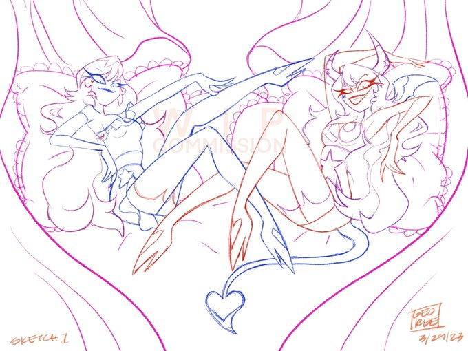 Honestly, they look cute as a couple 😍 commissioned by @TheDoomSlayer42 #HelluvaBoss #HelluvaBossFanart #HelluvabossVerosika #DOOM #doomslayer #DoomEternal #Commission #commissionart