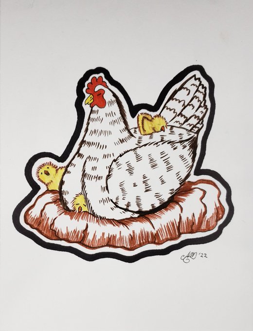 16-Fowl. Another way to say hen basically. Wait first egg or Hen? #hen #fowl #egg #firsteggorhen #inktober #inktober2022 #inktober2022fowl instagr.am/p/CjyFu9EtmEt/