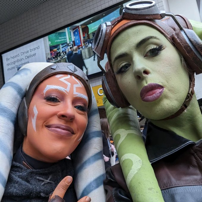 I can't believe this is the only photo I took with my partner in cosplay crime blaquewidowe all weekend 🤣🙃 #StarWarsCelebration #StarWarsCosplay #Cosplay #AhsokaTano #HeraSyndulla| 👀 more -> instagram.com/p/CrD3U29LwWE/)