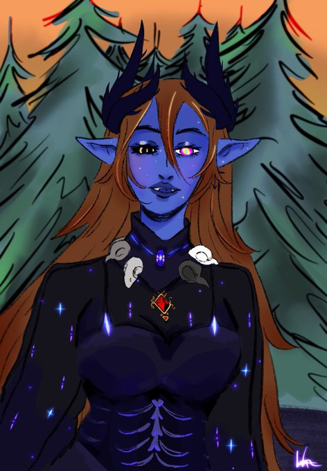 Oh! And this is Fern! My #Hexblood Shadow sorcerer who's been recently retrieved from #Shadowfell :3 She be a creepy forest bby sitting in the corner peeling her skin #dnd #dungeonsanddragons #dndsorcerer #dndart #dndoc #digitalart #fantasy