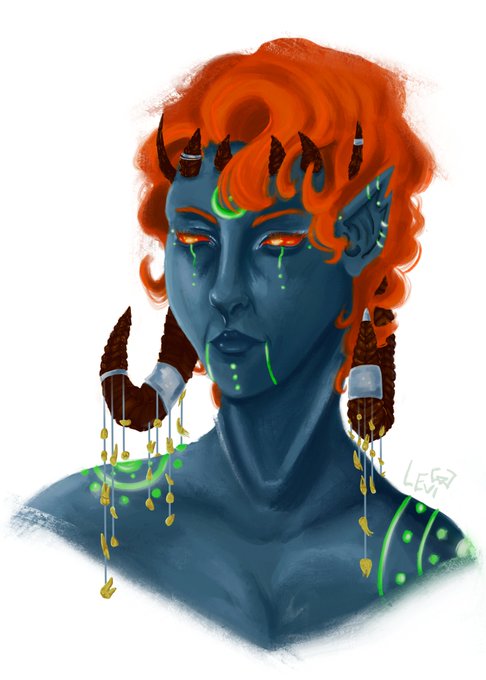 Feylorn - OC Commission I made. This was very challenging because I’m not used to painting green skin lol. Last one is the original reference. #hexblood #dnd #dndart #tiefling #dungeonsanddragons #art #originalcharacter #Commission #digitalart