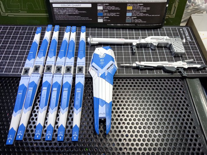 デカールワーク開始 RG特有のグレーの縁取りみたいなのは敢えて使わない方向。#午後9時からのガンプラモデラー #hiνガンダム #ガンプラの画像貼るとRTされると聞いて #ガンプラ #ガンダム