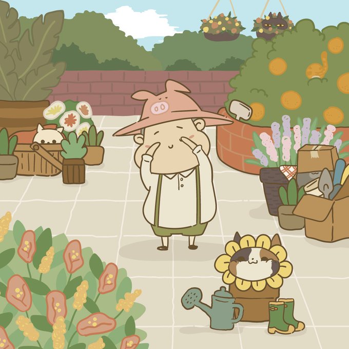 ニャーニャー🐱🔍 Nyaa~ kitten, where are you~ Can you help Aki find all cats in this garden? #AnimalFarmStay #hideandseek #ınternationalcatday #nekonohi #ニャーニャー #猫 #猫の日 #ArtistOnTwitter #illustration #今月描いた絵を晒そう #イラスト #일러스트