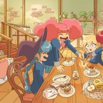 Humble offerings from my #HighGuardianSpice archives, the art from the end credits! These drawings were super fun to do, I did the character art and the amazing @james_batrez did the BG's and color!