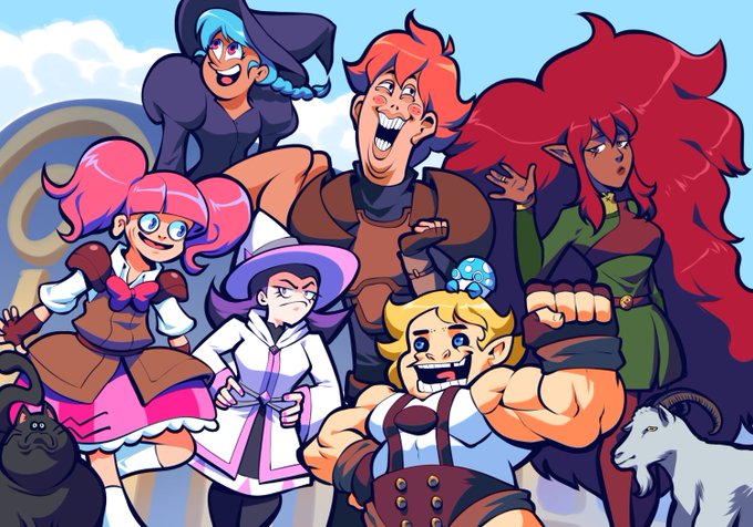 Humble offerings from my #HighGuardianSpice archives, the art from the end credits! These drawings were super fun to do, I did the character art and the amazing @james_batrez did the BG's and color!