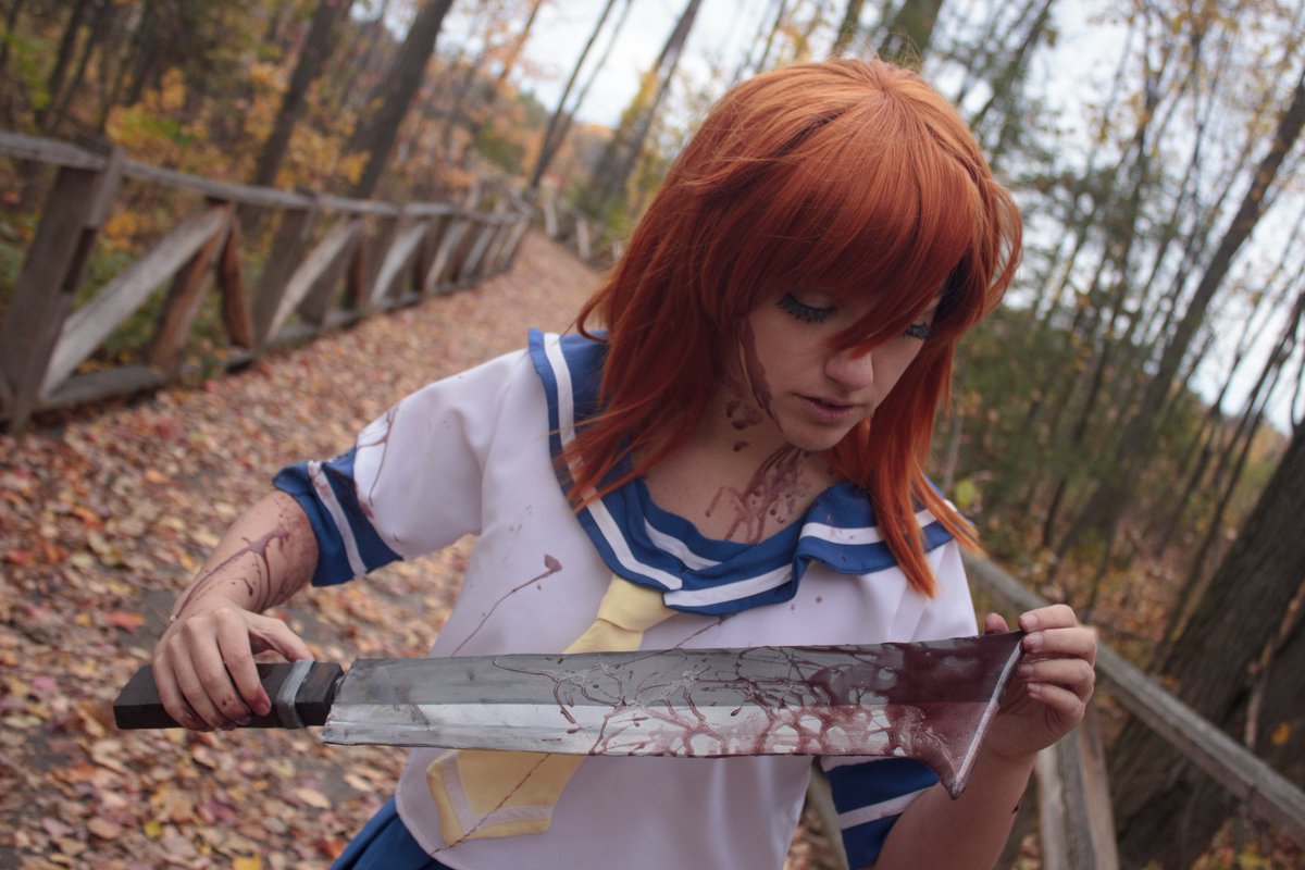 🎃Happy Halloween🎃🔪 Don't mind me, just cleaning my weapon after I k*lled my good friend. 😌 ✂️ Handmade Rika: Dual Valley Cosplay (fb) #higurashisotsu #higurashinonakukoroni #halloween2021 #higurashicosplay
