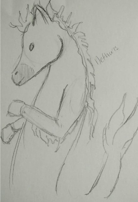 For #sketchtember I will finish my #Moonplanet-exchange. These are just sketches and I will digitally ink them for #Inktober. Day 2: #Nethuris, a #Hippocampus by Mene bit.ly/37T8YZE #anime #manga #fantasy #oc #WIP #cute #kawaii #chibi #イラスト #アニメ #漫画 #可愛い