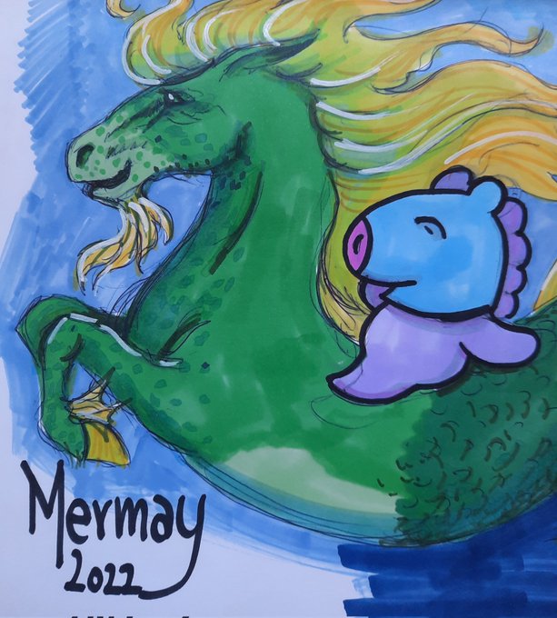 Mermay 08/05... Wuhuuu! What a fun ride. Mang and friend have so much fun. #mermay2022 #mermay #hippocampus #BT21 #bt21fanart