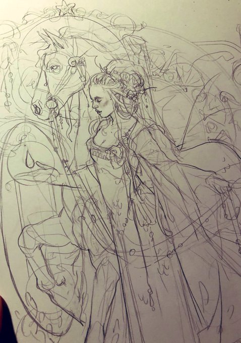 Last minute sketch for a eccc #monstersanddames entry since I’m working on this at the end of #mermay I figured a water nymph and #hippocampus would be an appropriate combo