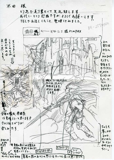 実はソーサリアンの前に、ザナドゥの絵を描いた(JICC出版の攻略本)のがファルコムさんとの付き合いの始まりでした。 このラフも出てきましたのでアップしておきます。完成した絵の方は多分東京の仕事場にあります。😁 #illustration #イラスト #HitoshiYoneda #米田仁士 #Watercolor #水彩画