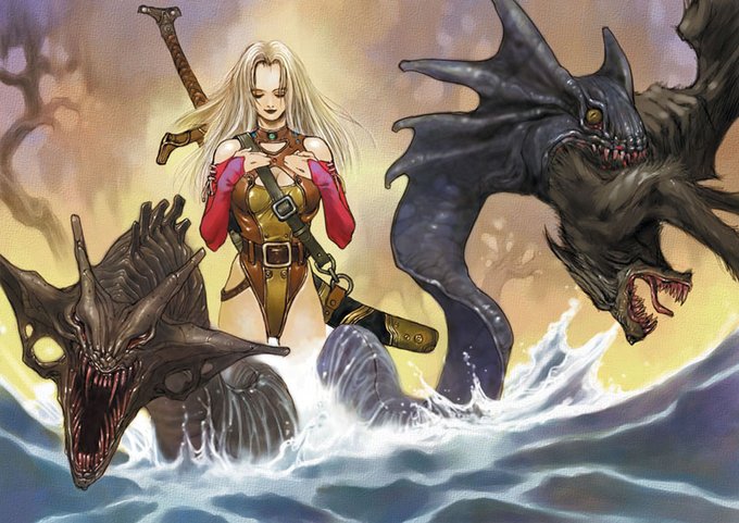 私がルフィーアやディアーネを描いた、こういう絵(RPGamerのカバー)ならあります。😁 #illustration #watercolor #イラストレーション #水彩画 #米田仁士 #HitoshiYoneda twitter.com/DEVA_JS/status…