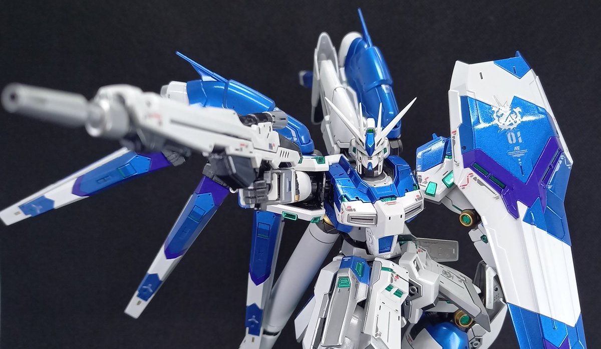 RG Hi-vガンダム #サイコフレーム実装Ver という仮想設定で塗装 撮影中にいじってたら一部パーツが壊れたので、部品発注をしないと…… #ガンプラ #ガンダム #Hivガンダム #ガンプラの画像貼るとRTされると聞いて #アワハイムエレクトロニクス