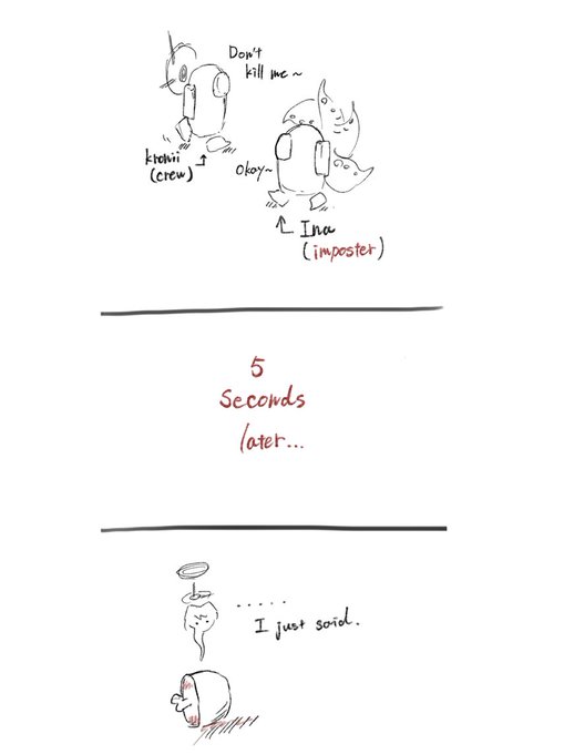 Bittersweet scene based on recent events: A genuine moment of self reflection interrupted by occasional screams of terror. #gawrt #callillust #HoloENAmongUs