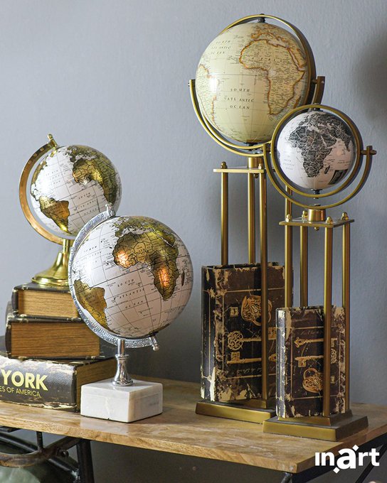 Are you a world traveler? Do you want to be? Make a bold statement by decorating your space with vintage globes! 📍Explore more décor pieces at inart.com #inart# #inartliving #loftdecor #homesweethome #housedecor #interiorstyling #homeinspiration