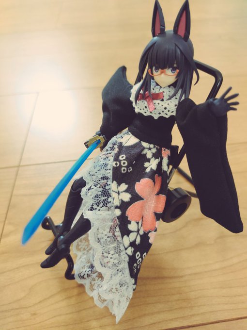 カスタム髪パーツにネオジム磁石を仕込んだばかりの朱羅 弓兵に、今日、いのう商店さんで購入した、HoneySnow( @yu_ki_tan )さんの背中あきタートルワンピ 胸あきverを合わせてみる。 良いですね。。。 うん、着々と深みにはまっていってるな。。。 #メガミデバイス #いのう商店 #HoneySnow