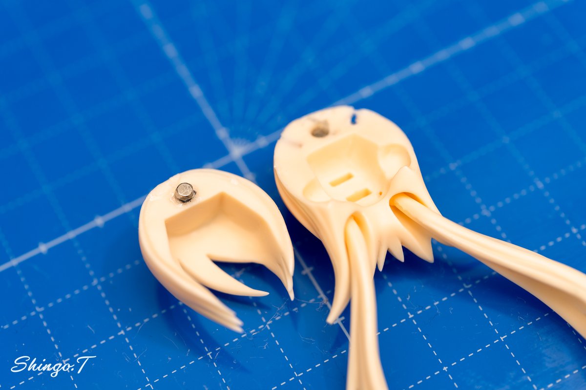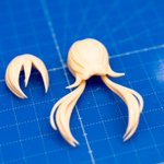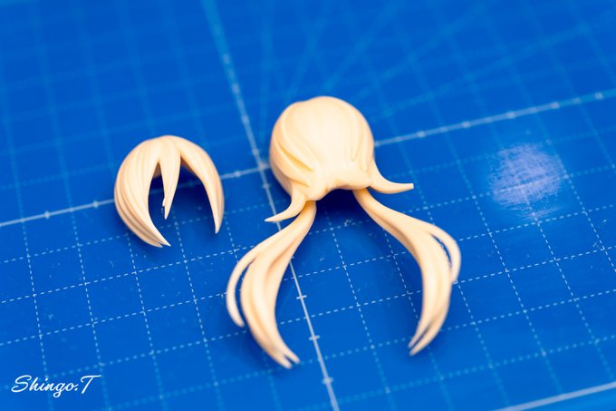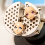 今日の工作 先週、シリコンゴムを使ってレジンキャストで複製した #メガミデバイス 朱羅 弓兵の顔パーツ まずは、どんなイメージになるか把握したかったので、表面処理もそこそこに肌色で塗装し、瞳デカールを貼ってみました。 #HoneySnow