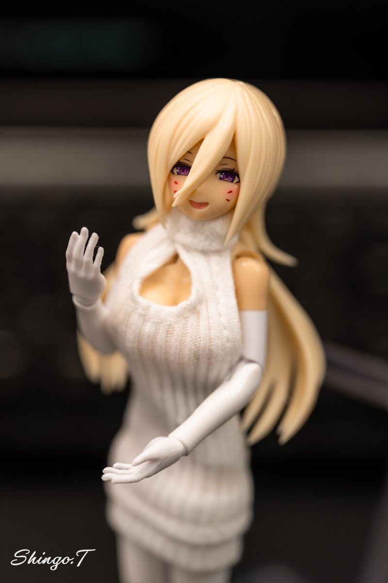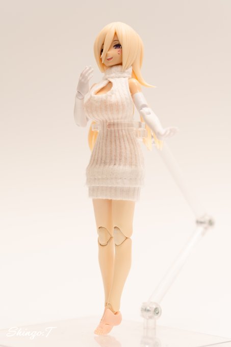 メガミデバイス SOLラプター HoneySnow様のオフショルダーワンピ です♪ 長袖となっており、暖かそうです♪ メガミデバイスの他、フレームアームズガール 創彩少女庭園にも対応です♪ 購入はいのう商店様にて♪ 少し肌寒い春の夜にちょうど良さそうです♪ #メガミデバイス #HoneySnow #いのう商店