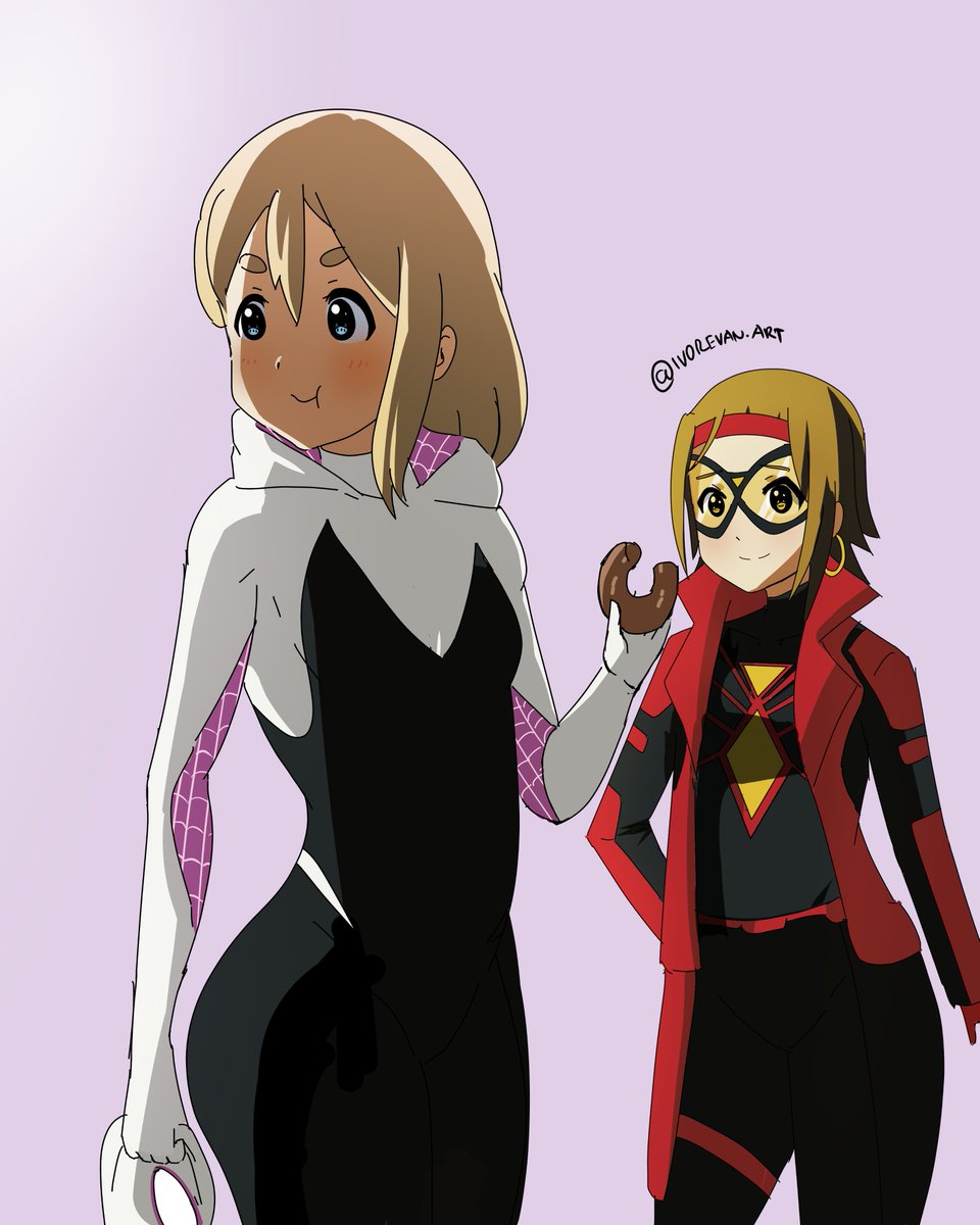 Mugi cosplaying as Spider-gwen, and Ricchan as Spider-woman #SpiderVerseID #spidergwen #SpiderWoman #kyoani #kyoani #keion #tsumugikotobuki #fanart #art k-on #BocchiTheRock #kyotoanimation #houkagoteatime #kyoani #anime #mioakiyama #yuihirasawa #animegirl #らくがき #rkgk #mugi
