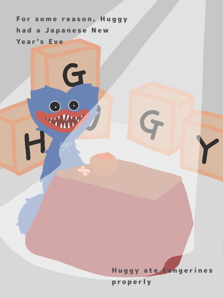 年越しの瞬間は描いてる途中のハギーを見てました 何故か急に日本式の年越しをしたハギー みかんもちゃんと食べた #PoppyPlaytime #huggywuggy #PoppyPlaytimefanart #huggywuggyfanart
