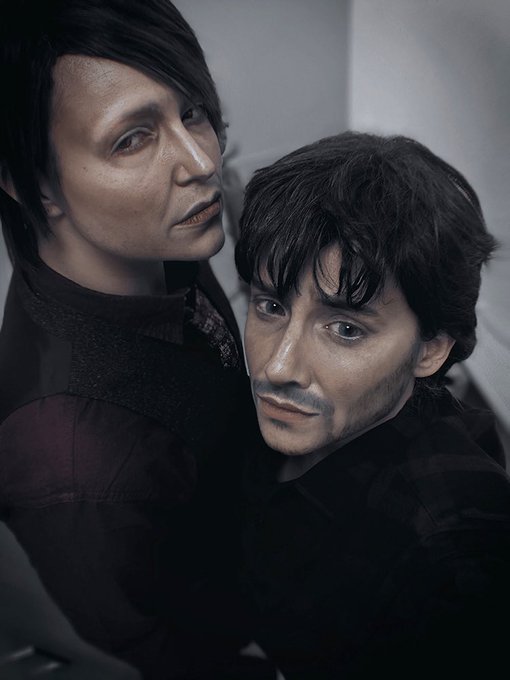 Join for dinner? 🫀 #Hannibal : @milasami_cos #WillGraham : me . #Hannigram #cosplay #crossplay #FannibalsWorldwide #MadsMikkelsen #HughDancy #BryanFuller