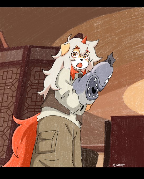 // rkgk I finally successfully completed sketching out a Hung? But I still think I need more practice on it… HAPPY CNY brought from me together with #Hung & #Aak #吽阿 #吽 #阿 #ア #Arknights #明日方舟 #アークナイツ #絵描きさんと繋がりたい #illustration