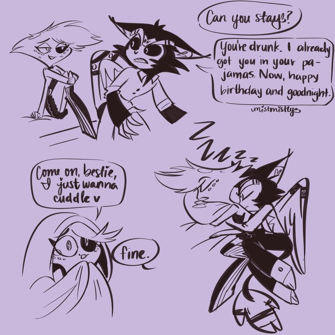 Some soft #HuskerDust while celebrating Angel's birthday 💕 #HazbinHotel #HazbinHotelAngelDust #HazbinHotelHusk twitter.com/VBJ_Marble/sta…