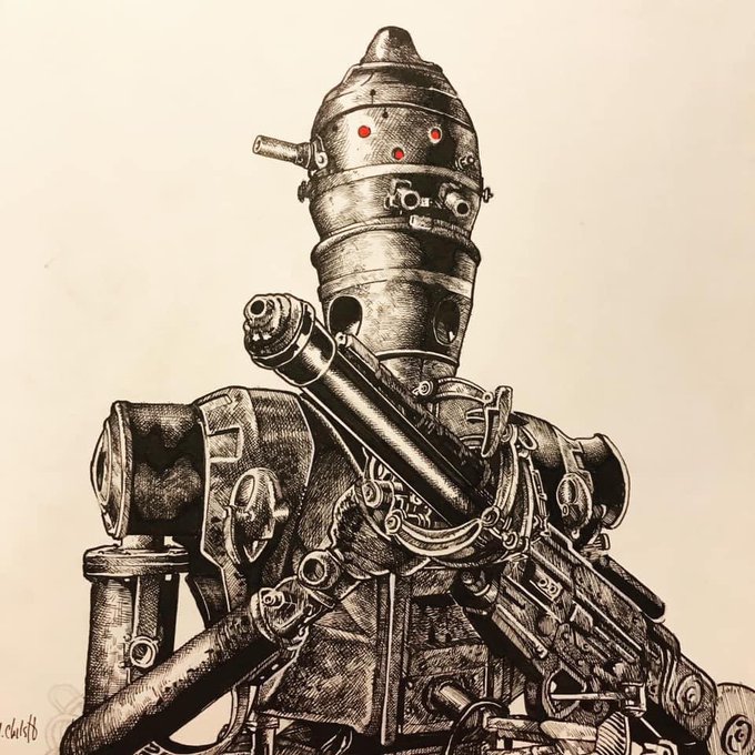 Inktober Day 3 Boba Fett and IG-88 #inktober2022 #inktoberday3 #sketch #Ink #airbrush #starters #bobafett #IG88