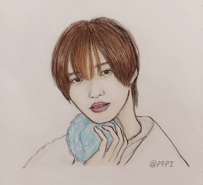 この目と、目にかかる長い前髪が大好き🥺💗 #佐藤新 #IMPACTors #高良くんと天城くん #高天 #高天ロス #ジャニーズ #イラスト #似顔絵 #鉛筆画 #色鉛筆画 #PINKyさんと繋がりたい