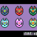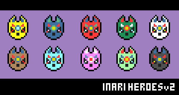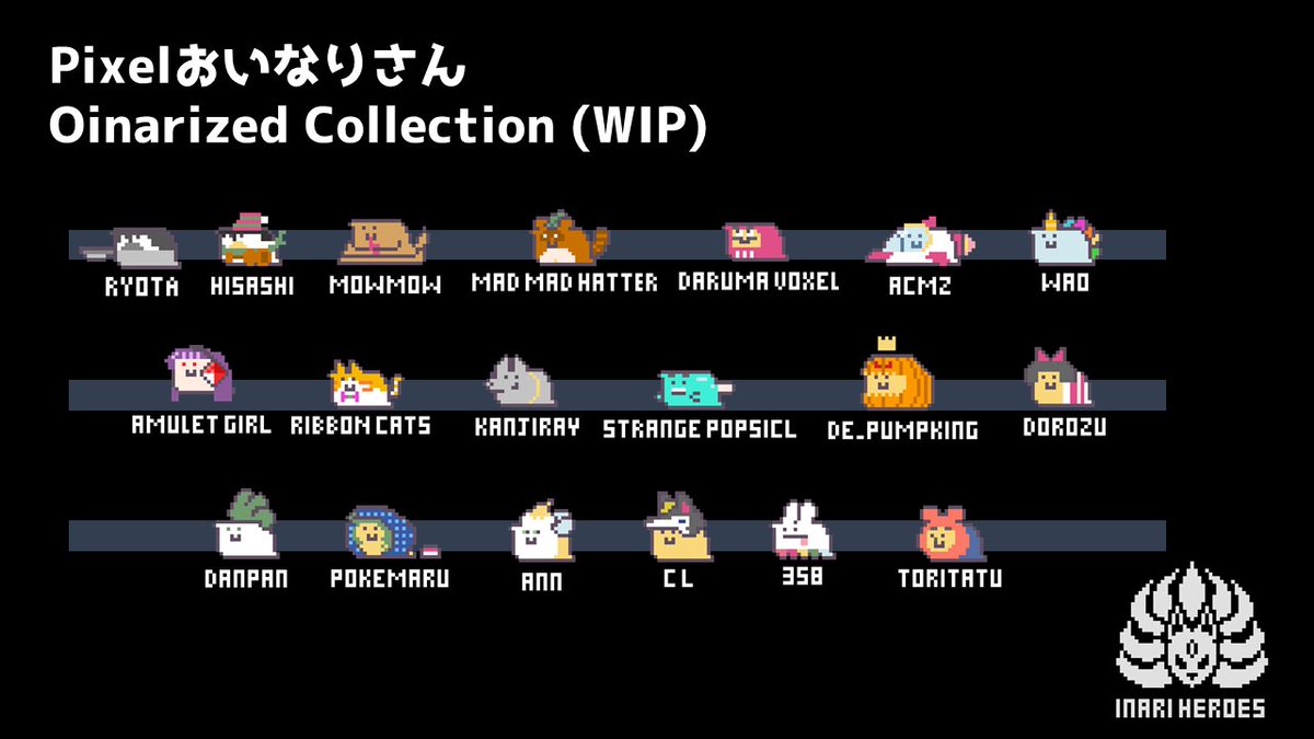 SサイズのオイナリはINARIHeroes-Pocketと呼ぼうかな🦊 数が集まるとやはり強い🦊 そしてこの解像度だと同じ1ドットが人によって口だったり鼻に見えたりして面白い🦊 #INARIHeroes #ドット絵