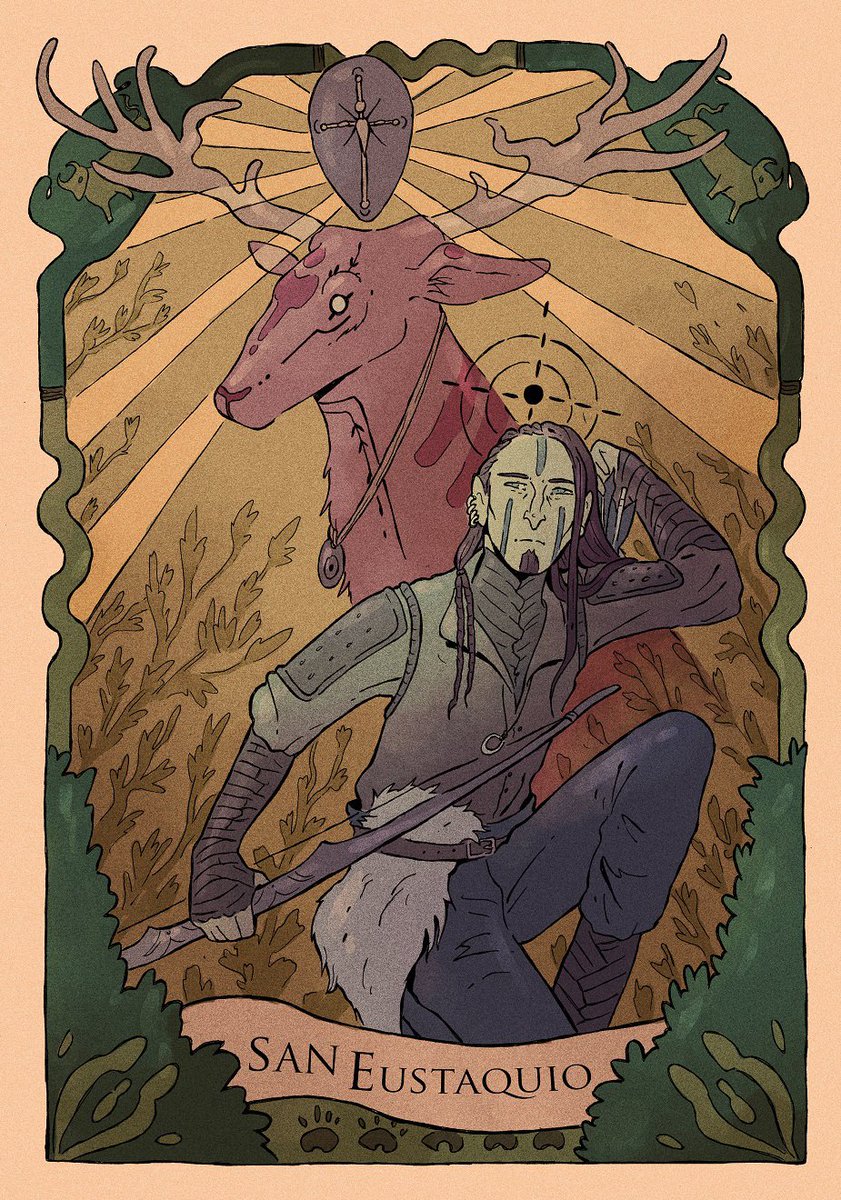 Tintubre. Día 29. San Eustaquio (20 de septiembre) El santo de la caza. (Su historia aquí: irina-hirondelle-inktober.tumblr.com/post/666396406… ) #inktober #inktober2021 #inktoberday29 #Tintubre #drawtober2021 #drawtober #saneustaquio