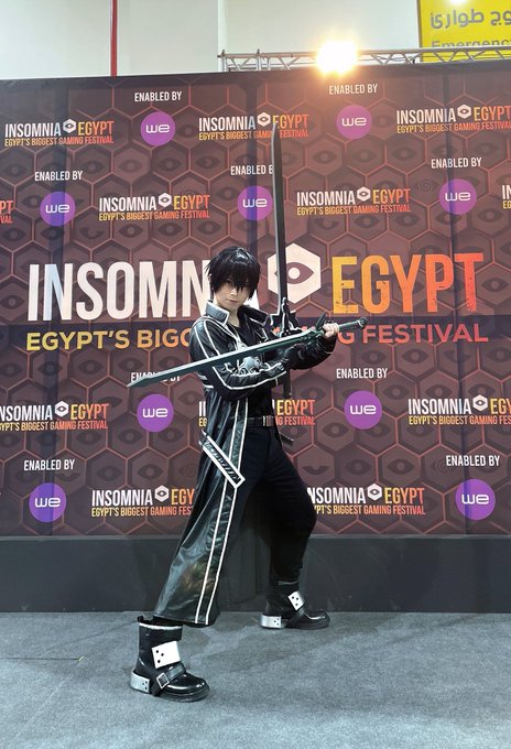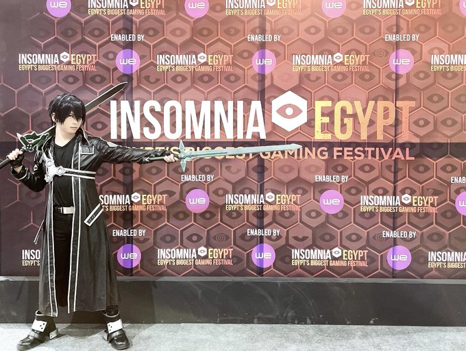 エジプトのイベント1日目はSAOキリトくん!⚔ SAO好きの方々に会えたら良いですね! イベント盛り上げていきますぞ💪✨ #INSOMNIAEGYPT #cosplay #sao @insomniaegypt