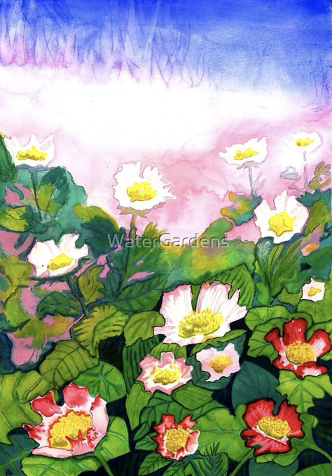 A magical garden tinyurl.com/ybpsee5s on lots of stuff in my #Redbubble shop #SmallBusinesses #SupportSmallBusinesses #GiftIdeas #Watercolour #Watercolor #Flowers #Garden #Roses #Decor #WallArt #Interiors #Stationery #iPhone #ArtistsOnTwitter