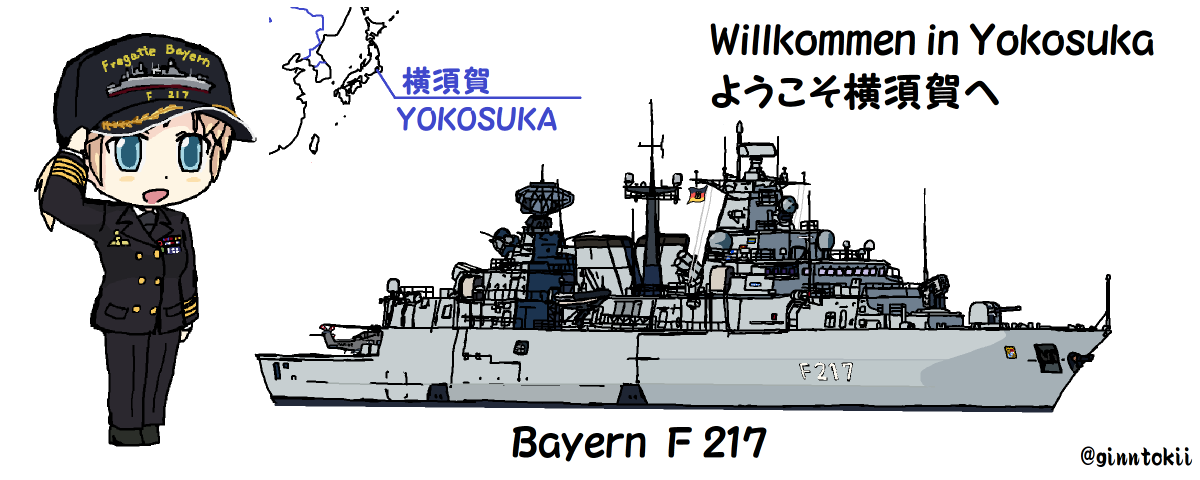 ドイツ海軍フリゲート艦「バイエルン」横須賀入港との事 ようこそ横須賀へ! /( ̄▽ ̄) 時間がとれればさらに加筆修正と #海上自衛隊 護衛艦「さみだれ」を並べて描いてみたいです。 #BayernInJapan #IPD2021