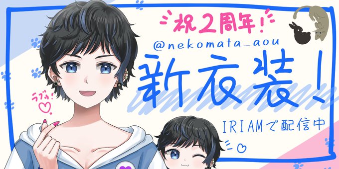 又 蒼生ちゃん(@nekomata_aou )のIRIAM新衣装描かせていただきました! 2周年おめでとうございます!8/1〜8/7までお祝いウィークだそうで、今回制作させていただいたものたちだけでも盛りだくさん!面白い配信になっております…!✨ぜひ、配信覗いてみてください! #IRIAM #IRIAM繋がり隊 #イラスト